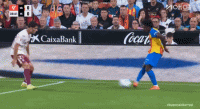 第44分钟时,科佩特犯规被判黄牌并获得点球,莫雷诺主罚命中,比利亚雷亚尔以1-0领先